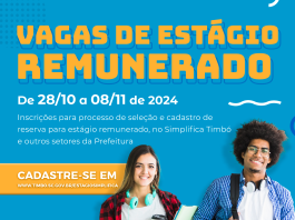 Inscrições abertas para vagas de estágio remunerado na Prefeitura de Timbó