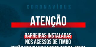Barreiras instaladas nos acessos de Timbó serão retiradas nesta terça-feira