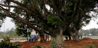 Figueiras em frente ao Parque Central estão recebendo limpeza e tratamento