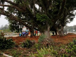 Figueiras em frente ao Parque Central estão recebendo limpeza e tratamento