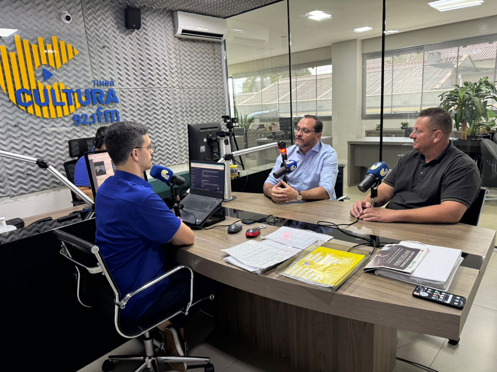 Nas primeiras horas do dia, o prefeito e o vice participaram ao vivo do programa “Jornal da Cultura”, na Rádio Cultura de Timbó. Durante a entrevista, compartilharam suas principais metas e falaram sobre os desafios e as prioridades dos primeiros dias de governo. A comunicação direta com a comunidade foi destacada como um pilar da nova gestão.