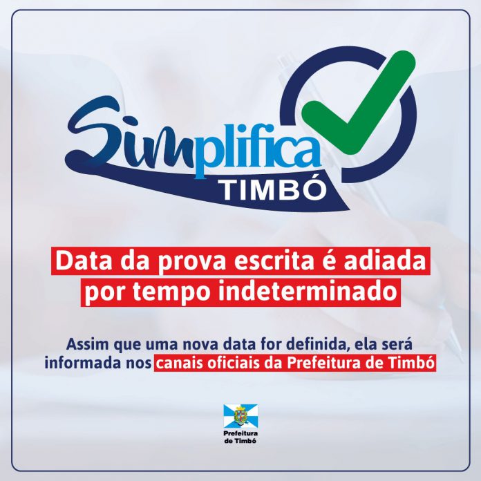Tal medida se mostra essencial diante da atual situação, na qual o município está classificado como “Risco Potencial Gravíssimo”. Assim que uma nova data para a realização da prova escrita for definida, ela será informada nos canais oficiais de comunicação da Prefeitura de Timbó.