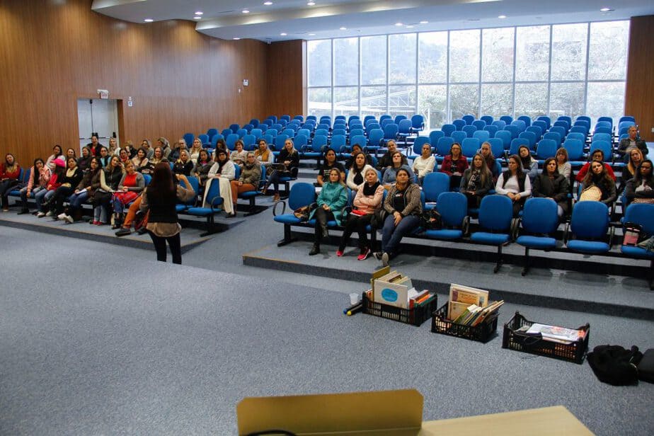 A Secretaria Municipal de Educação (SEMED) de Timbó continua com a aplicação do programa de Formação Continuada para educadores e auxiliares de recreação dos Núcleos de Educação Infantil (NEIs). Cerca de 280 profissionais estão se reunindo neste mês, em momentos distintos, na Câmara de Vereadores, para o aperfeiçoamento das práticas pedagógicas.