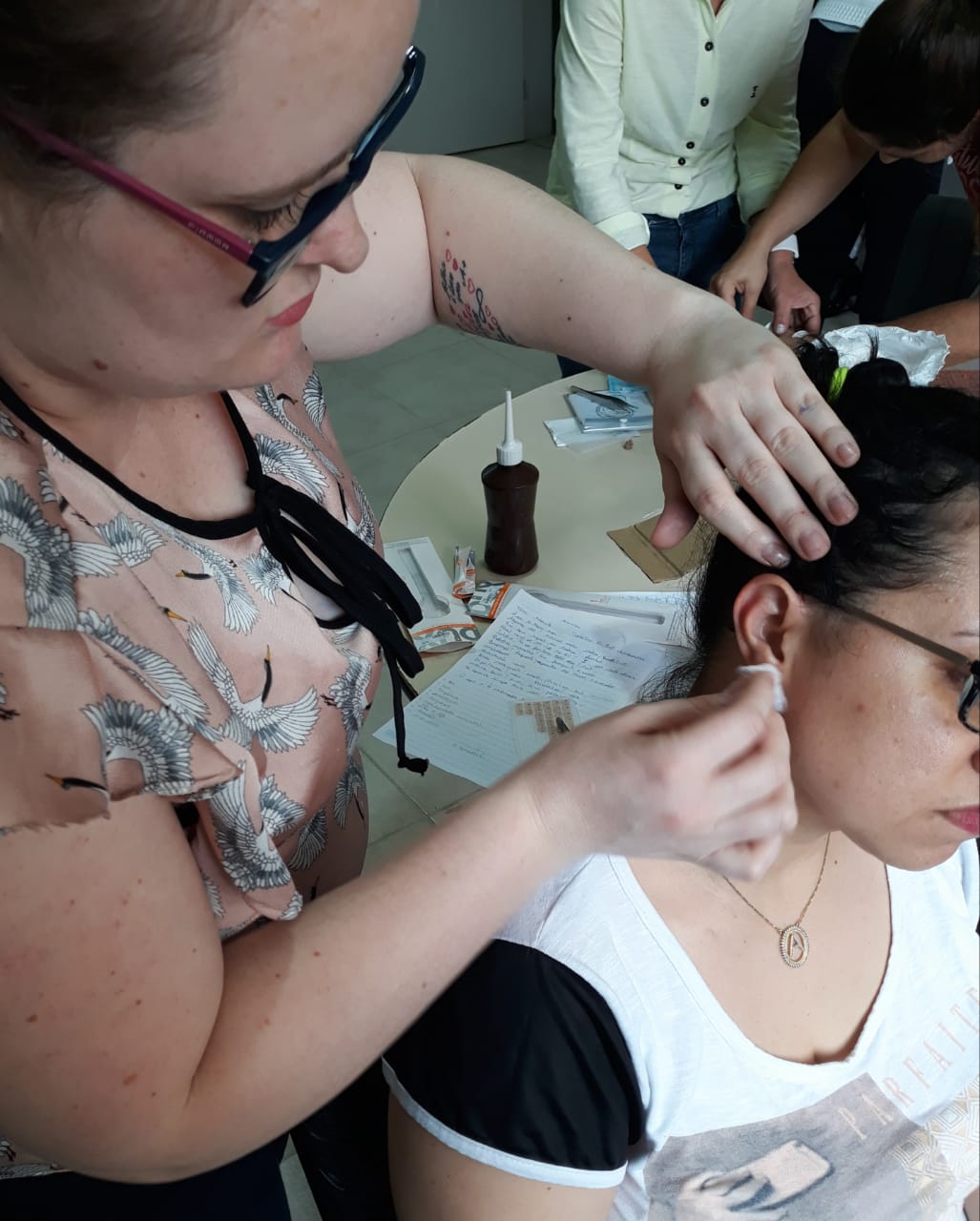 No mês de setembro, por exemplo, aconteceu o primeiro encontro de formação em auriculoterapia, recurso terapêutico que consiste na estimulação mecânica de pontos específicos do pavilhão auricular, com objetivo de prevenir e tratar problemas físicos e psíquicos. No início de outubro aconteceu o segundo e último encontro da formação, totalizando 16 horas.