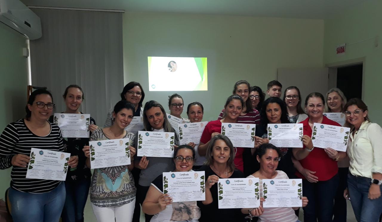 No total 20 profissionais da Secretaria de Saúde e Assistência Social participaram da formação e estão aptos a aplicar a auriculoterapia à população de Timbó, através de grupos ou do atendimento individual nas Unidades de Saúde da Família e no CAPS – Centro de Atenção Psicossocial.