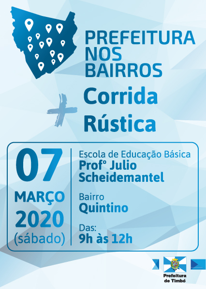 A partir deste mês de março o Programa Prefeitura nos Bairros volta a acontecer em Timbó, no Bairro Quintino. É a sétima edição do evento que aproxima a administração pública municipal da comunidade. Anteriormente, já receberam o programa os bairros Araponguinhas, Pe. Martinho Stein, São Roque, Pomeranos, Vila Germer e Tiroleses.