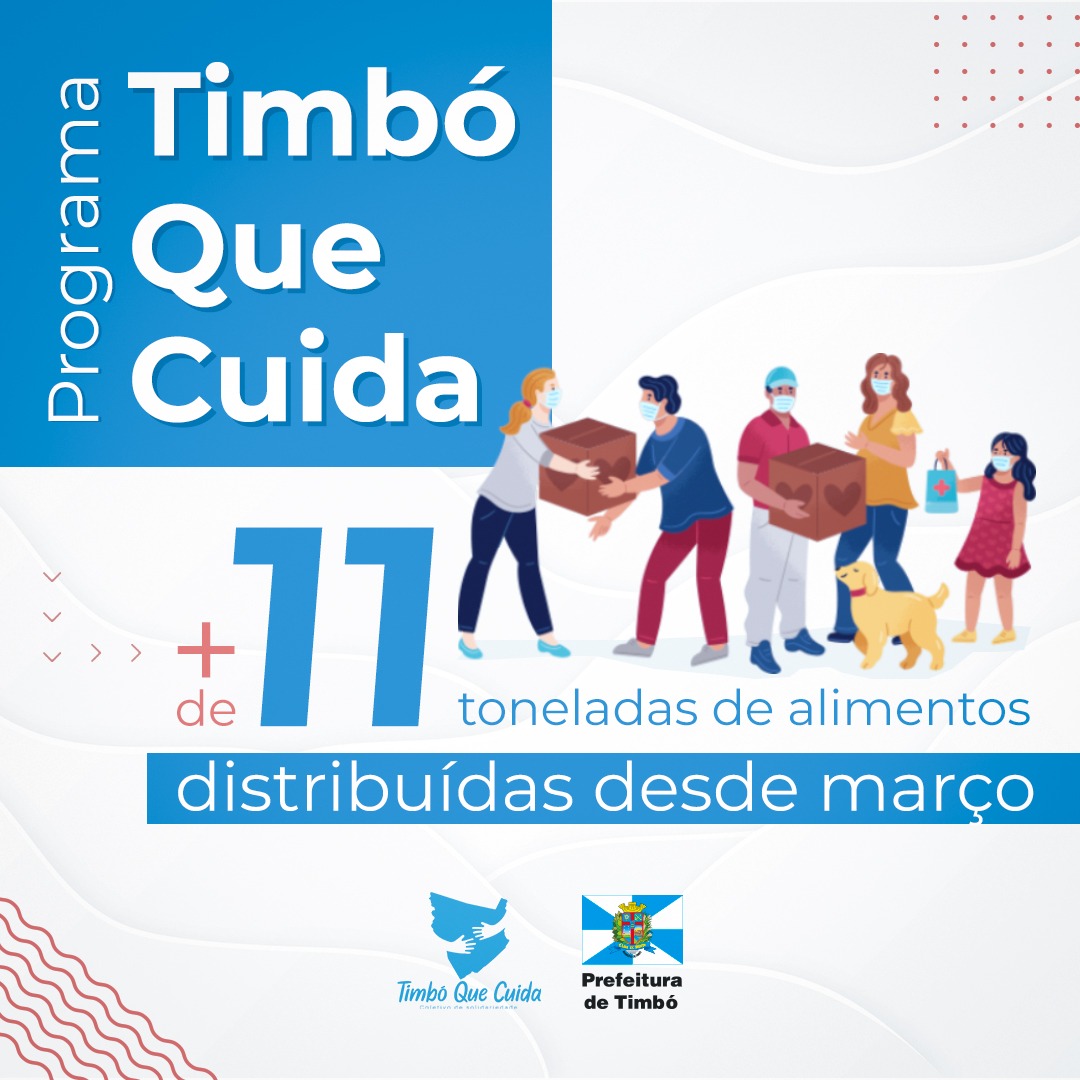 Desde março deste ano, quando iniciou o período de isolamento social, o Programa Timbó Que Cuida, que é uma iniciativa da Prefeitura de Timbó, já distribuiu mais de 11 toneladas de alimentos às famílias que vivem em vulnerabilidade social no município devido à pandemia do Coronavírus, o que representa mais de 1.019 cestas básicas entregues. Neste momento, há 241 famílias cadastradas na Assistência Social para receber esse auxílio.