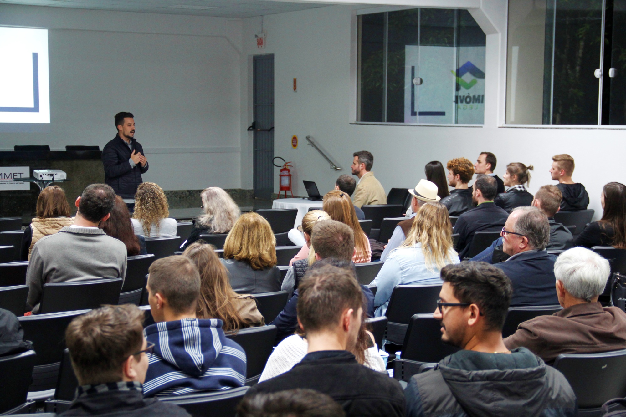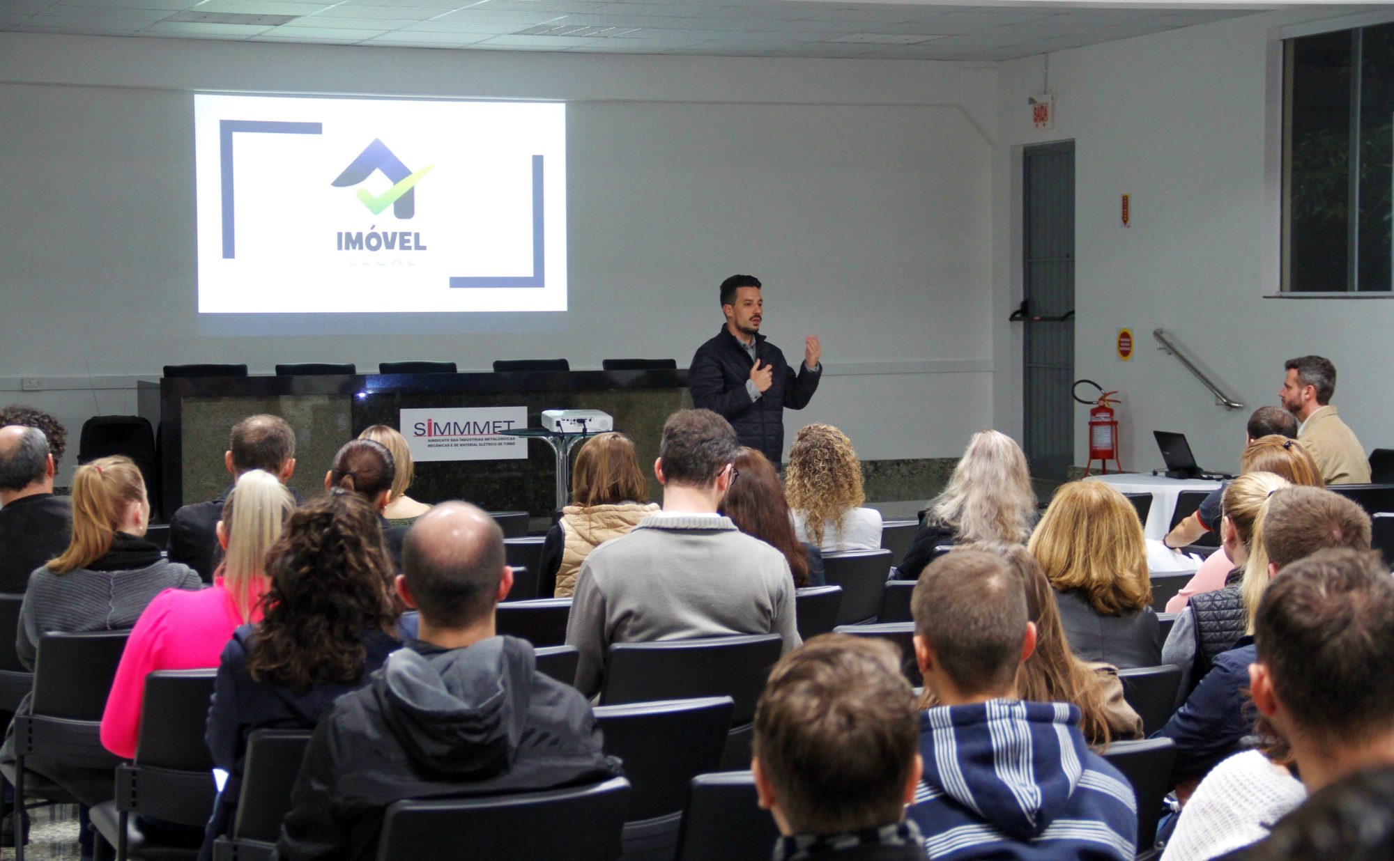 Cerca de 60 pessoas, entre engenheiros, arquitetos, corretores de imóvel e representantes de entidades de classe de Timbó participaram da apresentação oficial do Projeto Imóvel Legal na noite de ontem, 26, no Sindicato das Indústrias Metalúrgicas Mecânicas e de Material Elétrico de Timbó (Simmmet). Durante a apresentação o corpo técnico recebeu explicações sobre as principais funcionalidades da nova ferramenta online para aprovação simplificada de projetos, consulta de viabilidade, alvará de obra (construção e legalização), habite-se, alvará de demolição e certidão de averbação de construção.