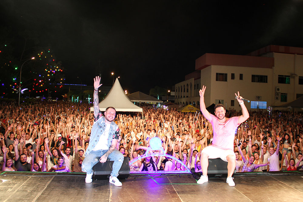 O DJ Adriel T iniciou os embalos do réveillon timboense abrindo as atrações musicais da noite. Em seguida a dupla Dany e Rafa botou o público para dançar com os maiores sucessos sertanejos nacionais e músicas de trabalho autorais dos meninos de Timbó. A tão esperada contagem regressiva para a chegada de 2020 foi realizada pelos dois, acompanhados do prefeito Jorge Kruger no palco. O já tradicional show de fogos da virada levou aproximadamente 10 minutos e encantou os presentes.