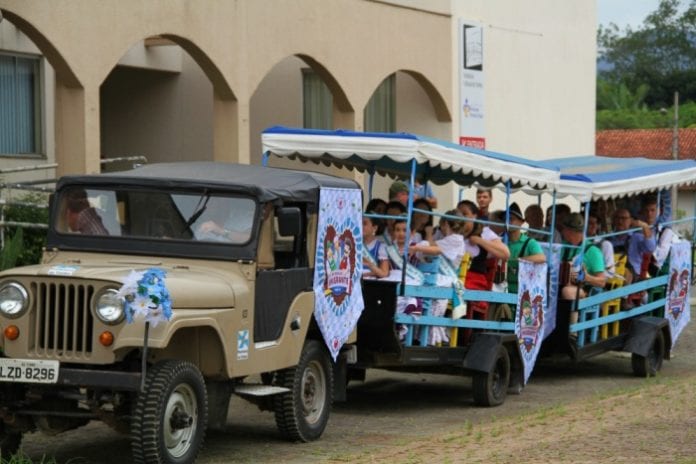 O último sábado, dia 06, foi marcado por muita alegria e animação pelas ruas de Timbó, com a tradicional retreta da 28ª Festa do Imigrante. A caravana passou pelos principais comércios da cidade, com a presença e simpatia das Rainhas e Princesas da Festa, os mascotes Bubi e Bepe, foliões convidados e integrantes da Banda Municipal Professor João Mueller e do grupo Os Cinquentões, convidando toda a comunidade para a Festa do Imigrante 2018.