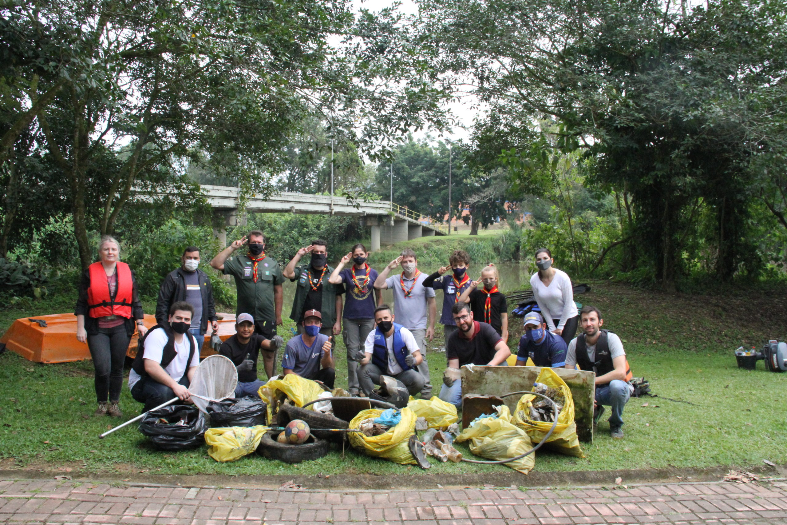 Pneus, capacetes, brinquedos e diversos outros itens que encheram cinco embalagens de material reciclável foram recolhidos na manhã desta quinta-feira, 3 de junho, no Rio Benedito, em Timbó. O trabalho de limpeza do rio foi uma iniciativa da Prefeitura de Timbó através do SAMAE, Secretaria de Planejamento e Meio Ambiente e Defesa Civil, com apoio Corpo de Bombeiros Militar (CBM). A atividade também contou com a presença do vereador Edson Bona e dos escoteiros Glauco Alexandre Klitzke e Gilson Ricardo Casas, do 20º Grupo Escoteiro de Timbó.