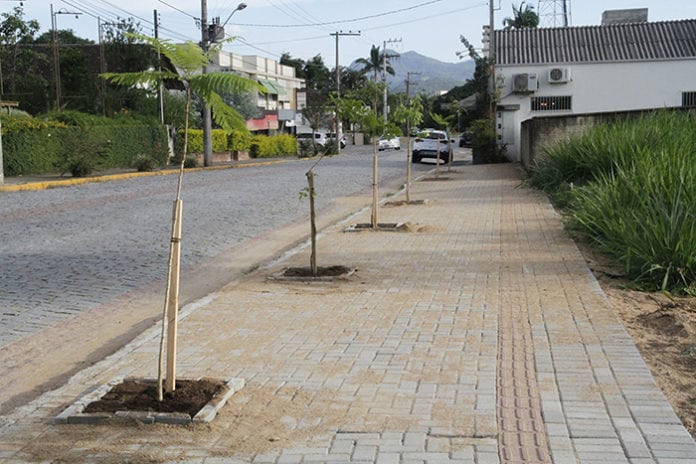 Durante esta semana, 26 novas árvores foram plantadas pelo Samae na Rua Marechal Deodoro da Fonseca, em Timbó. O plantio faz parte de um projeto que prevê a recuperação das calçadas e plantio de novas mudas, conforme o Código de Calçadas do Município, em um trecho que passou recentemente por obras, para substituição da antiga rede de ferro por outra nova, de PVC.