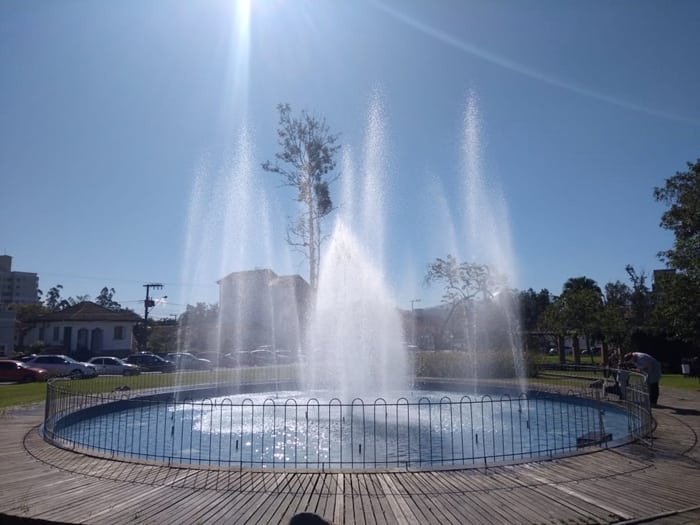 Nesta quarta-feira, dia 07, a equipe do Samae, em parceria com a Fundação Cultural de Timbó, realizou a limpeza e recuperação do chafariz do Parque Central. O chafariz recebeu, ainda, um filtro portátil, e a limpeza semanal do ponto ficará a cargo do Samae. Na próxima sexta-feira, dia 13, vamos testar o uso de novos bicos para direcionar a água, tornando os jatos ainda mais bonitos e eficientes, acrescentou Diego Zatelli, diretor de manutenção do Samae.