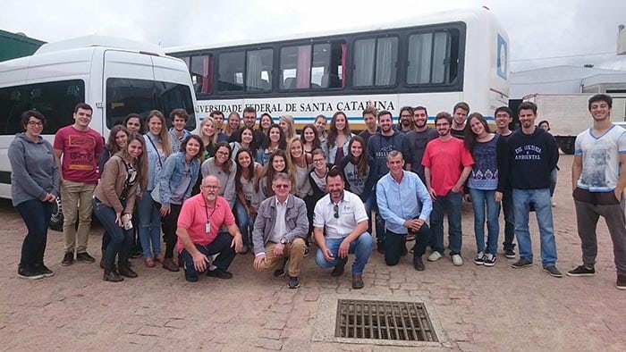 Já na terça-feira, dia 17, um grupo de 47 estudantes da 7ª fase do curso de graduação em Engenharia Sanitária e Ambiental da UFSC também esteve no Samae, acompanhados pelos professores Ramon Lucas Dalsasso e Maurício Sens. Visitaram a Estação de Captação de Água Bruta, a Estação de Tratamento de Água, o Booster da Rua Professor Alfredo Girardi e a Elevatória da Rua Blumenau. Os objetivos da visita foram conhecer o sistema de captação de água bruta e o tratamento e distribuição de água potável do nosso município, explica o servidor Anderson Sperber. Também participaram os servidores Walter Mazzi e Antonio Marcelo Roza.