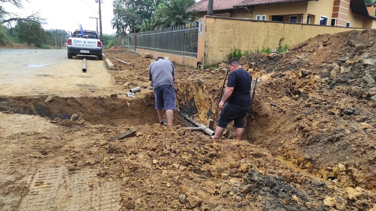 Mais água para os moradores do Cedrinho. O SAMAE Timbó está realizando a ampliação da rede de água na Rua Marechal Deodoro, no Bairro das Nações, que vai atender e abastecer as residências dos moradores da localidade do Cedrinho.