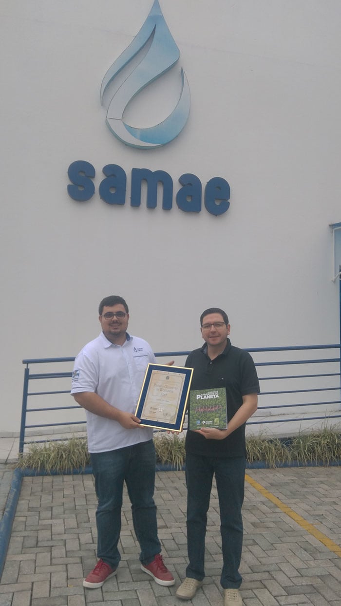 No mês de setembro, o Samae Timbó recebeu uma premiação do Instituto Gigantes da Ecologia IG, que é uma associação civil, sem fins lucrativos, que atua no intuito de mobilizar e apoiar ações comprometidas com uma sociedade mais justa e sustentável. O “Prêmio Gigantes da Ecologia 2017” foi entregue ao técnico em saneamento Rodrigo Catafesta Francisco, que teve parte de sua dissertação de mestrado utilizada no artigo escrito pelo Professor Joel D. da Silva, publicado no livro 12 Feridas Ambientais do Planeta.