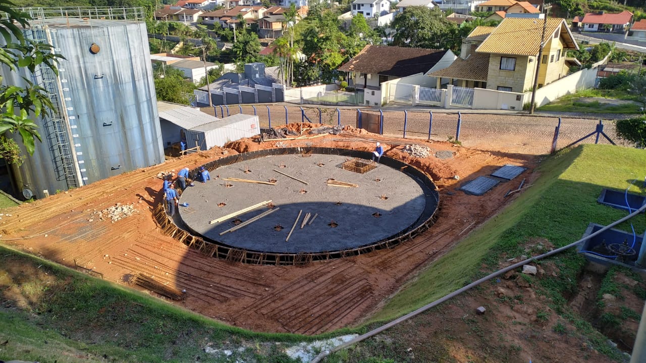 Nesta semana, o SAMAE Timbó finalizou mais uma etapa das obras do maior reservatório de água potável do município, o preparo da base e a primeira concretagem. Localizado na Estação de Tratamento de Água (ETA), com capacidade superior a 1 milhão de litros, a obra teve início em março deste ano e é a maior obra de infraestrutura já realizada pela autarquia.