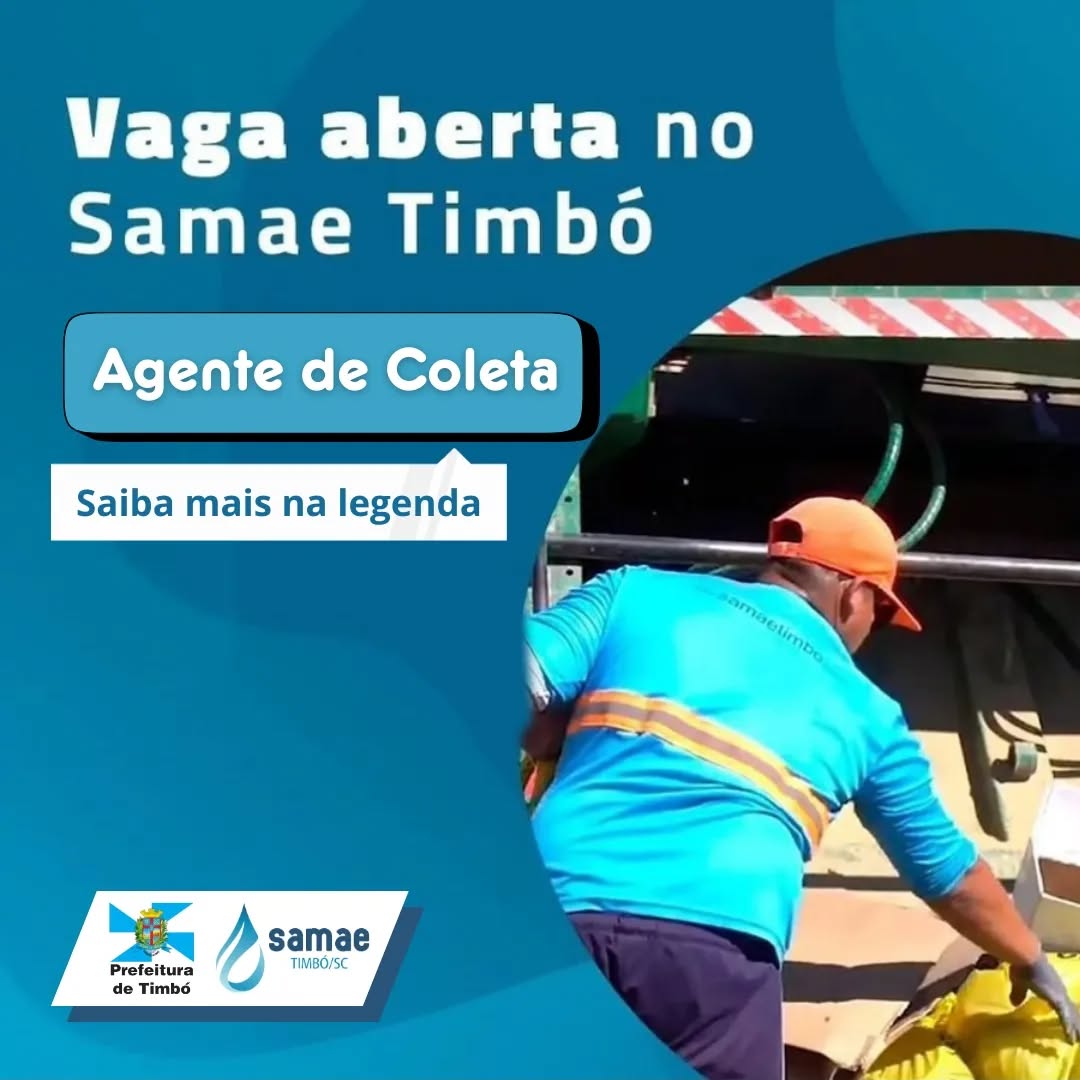 O SAMAE Timbó torna público o Ato Convocatório Nº 17/2024, para o cargo de Agente de Coleta e Seleção de Lixo.