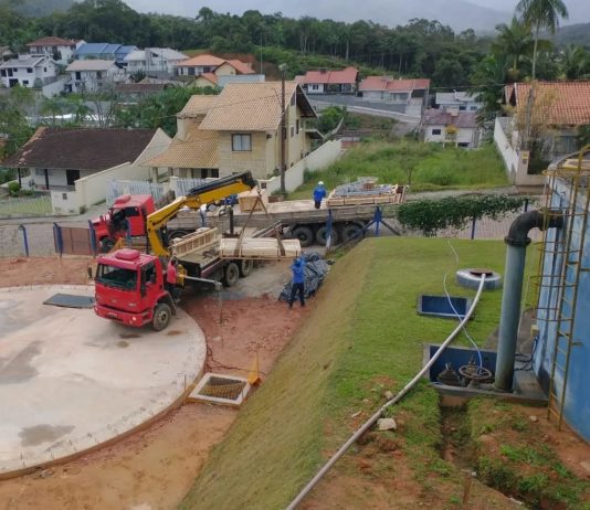 Telhado do maior reservatório de água potável de Timbó começa a...