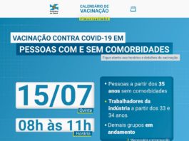 Timbó vacina contra Covid-19 pessoas a partir dos 35 anos e trabalhadores da indústria a partir dos 33 e 34 anos nesta quinta-feira