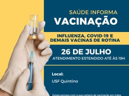 Unidade de Saúde da Quintino terá horário estendido nesta quarta-feira para aplicação de vacina