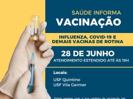 Unidades de Saúde da Quintino e Vila Germer terão horário estendido nesta quarta-feira para aplicação de vacina