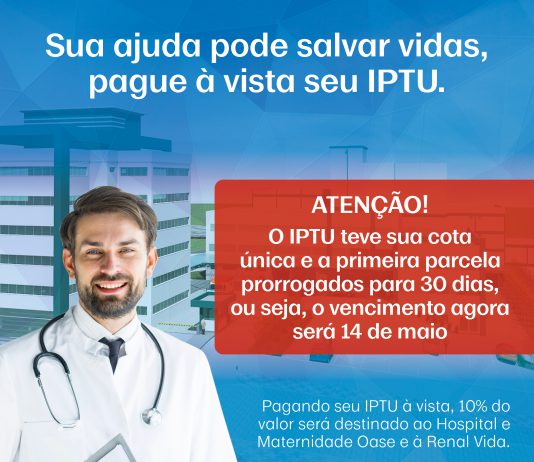 Pagamento do IPTU é prorrogado para o dia 14 de maio