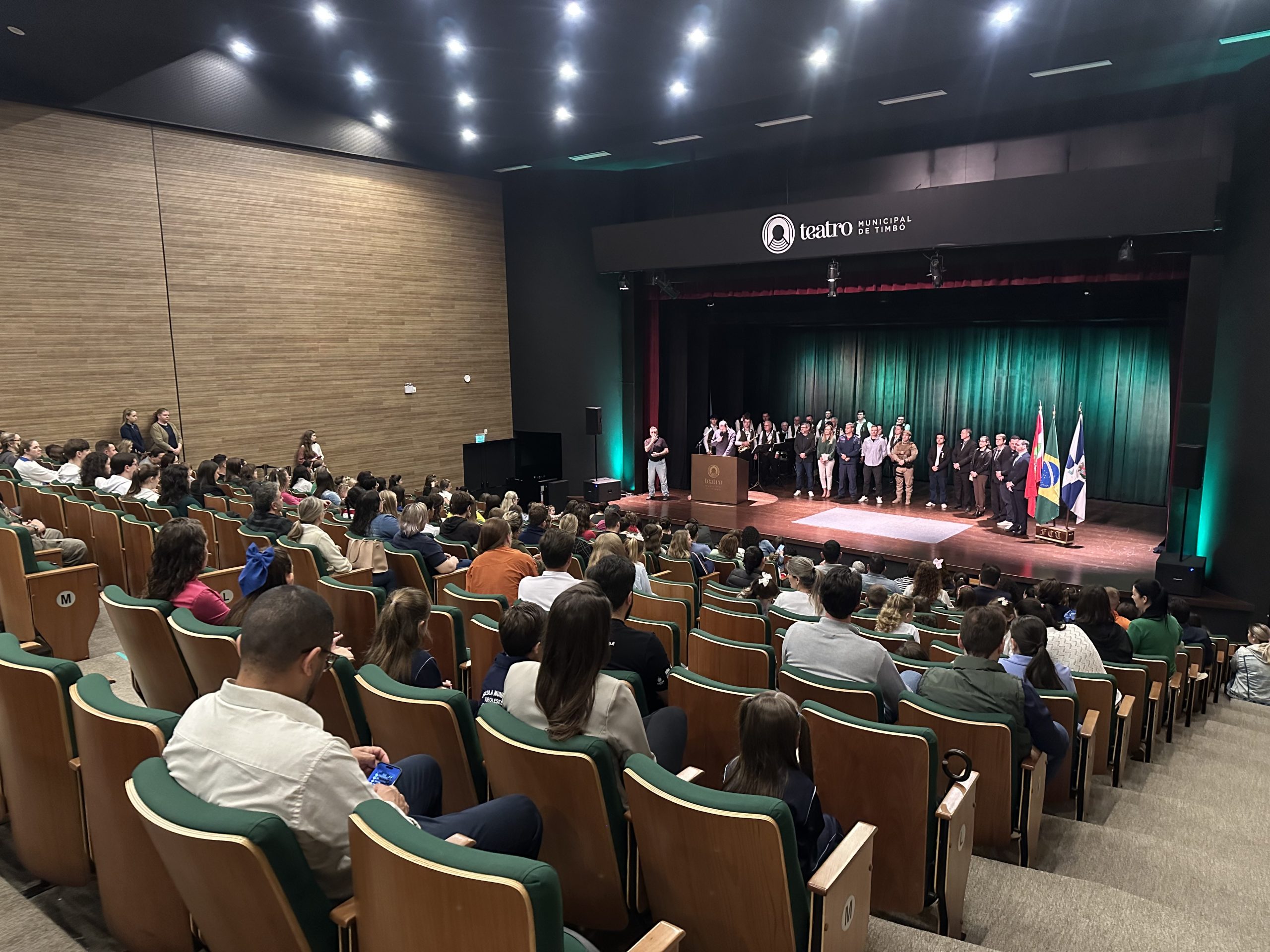 Na manhã desta segunda-feira, dia 1º de setembro, a Prefeitura de Timbó, por meio da Secretaria Municipal de Educação, promoveu a abertura oficial da Semana da Pátria 2025, no Centro Integrado de Cultura (CIC).