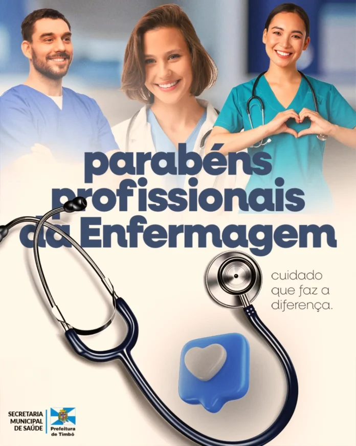 Nesta semana especial, a Secretaria de Saúde de Timbó parabeniza e agradece a todos os profissionais da enfermagem que atuam com dedicação, competência e, acima de tudo, com amor ao próximo.
