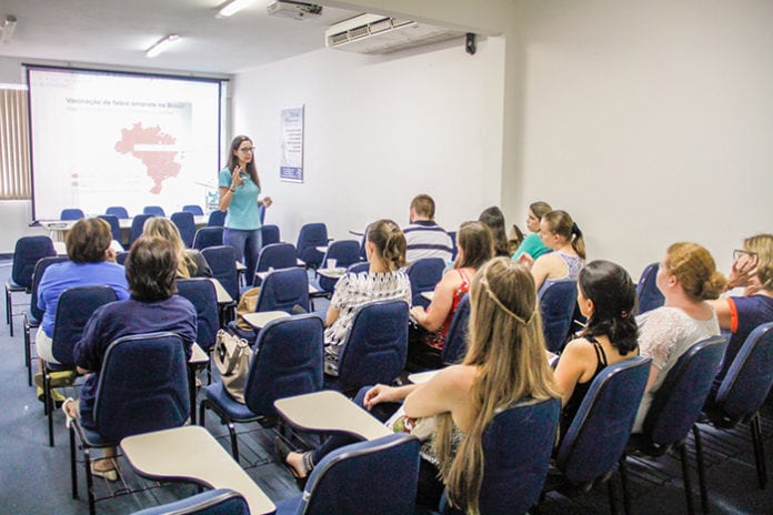 Os servidores da educação do município de Timbó participaram nesta quinta-feira, 01, de um curso sobre Saúde Respiratória. O encontro foi promovido pela Secretaria de Saúde, em parceria com a Vigilância Epidemiológica e o Departamento de Segurança no Trabalho da Prefeitura de Timbó, e reuniu diretores, coordenadores e professores responsáveis por escolas municipais, NEIs (Núcleo de Educação Infantil) e UPEs (Unidades de Pré-Escolares). A enfermeira e coordenadora da Vigilância Epidemiológica, Graziele Campregher, foi quem ministrou o curso.
