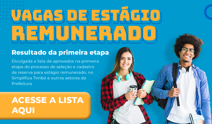 A Prefeitura e a Secretaria Municipal da Fazenda e Administração de Timbó divulgam a lista de aprovados na primeira etapa do processo de seleção e cadastro de reserva para estágio remunerado no Simplifica Timbó e outros setores da Prefeitura.
