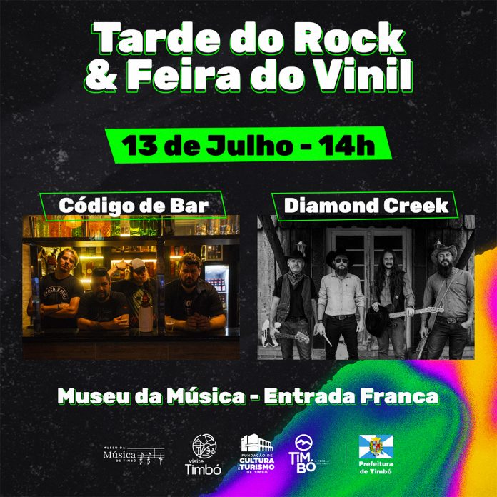 A trilha sonora da Feira do Vinil está garantida com a Tarde do Rock, que leva muita música boa, de bandas de rock da região, para o espaço externo do Museu da Música. Serão duas bandas que animarão esta edição do evento: Banda Código de Bar e Banda Diamond Creek.