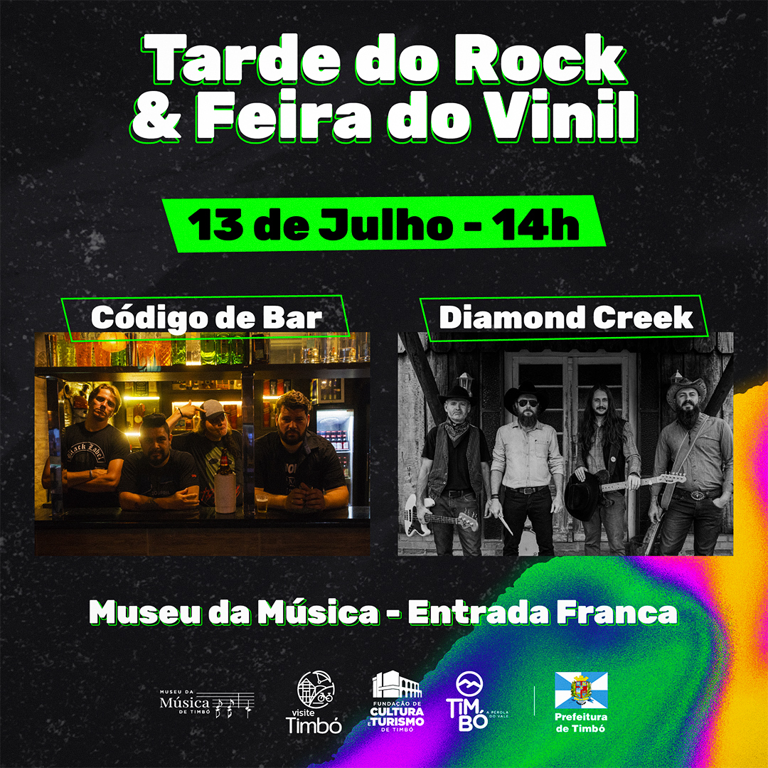 No dia 13 de julho, acontece a Tarde do Rock e a Feira do Vinil, um dos eventos mais queridos do Museu da Música. Neste ano, com o agito garantido das bandas Código de Bar e Diamond Creek.