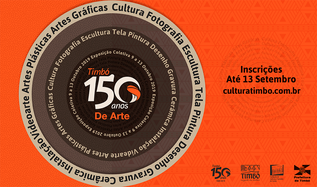 Artistas têm até sexta-feira (13) para realiza inscrição para a Exposição Timbó 150 Anos de Arte. Poderão participar artistas nascidos em Timbó ou que exerceram o ofício na cidade por algum tempo, com obras nas seguintes categorias: pintura, desenho, gravura, escultura, cerâmica, fotografia, objeto, instalação, videoarte entre outros.