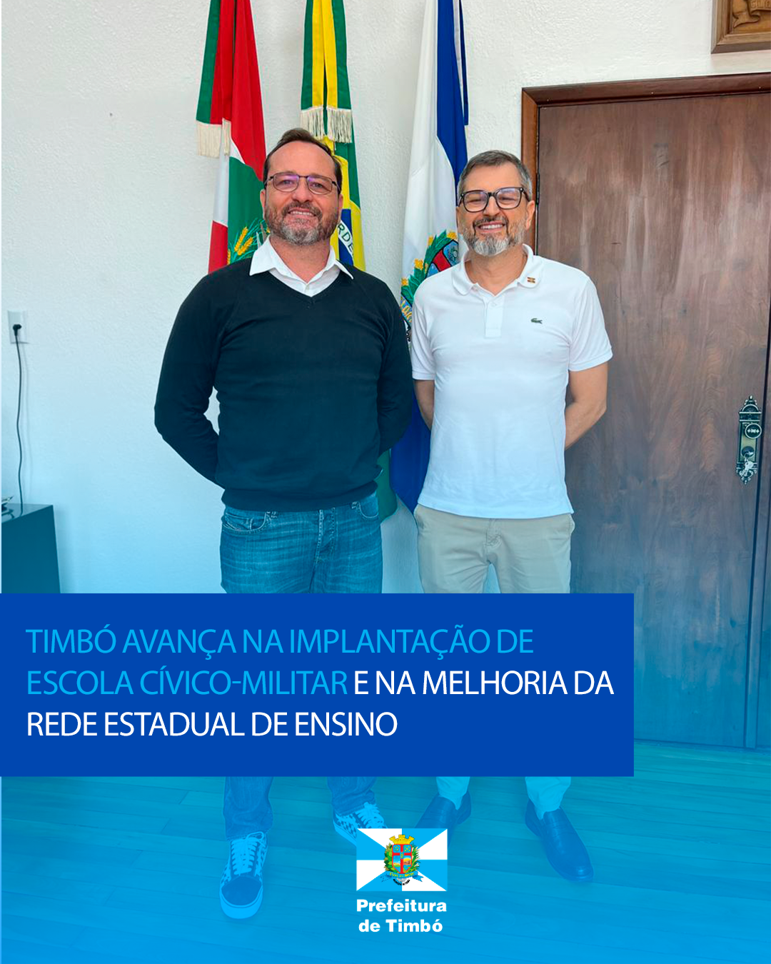 Nessa quinta-feira, 24 de abril, o prefeito Flávio Buzzi recebeu em seu gabinete o coordenador Regional de Educação de Timbó, Renato Dallabona. Durante o encontro, foram debatidos os avanços e os próximos passos para a educação na cidade. A reunião reforça o diálogo constante e o trabalho em parceria entre o Município e o Governo do Estado, fundamentais para a concretização de melhorias significativas na rede de ensino timboense.