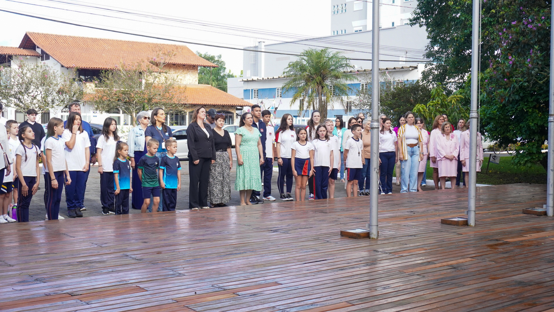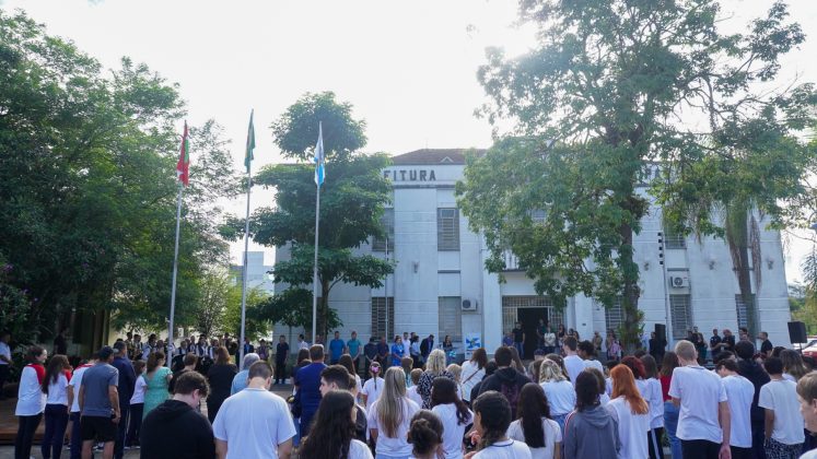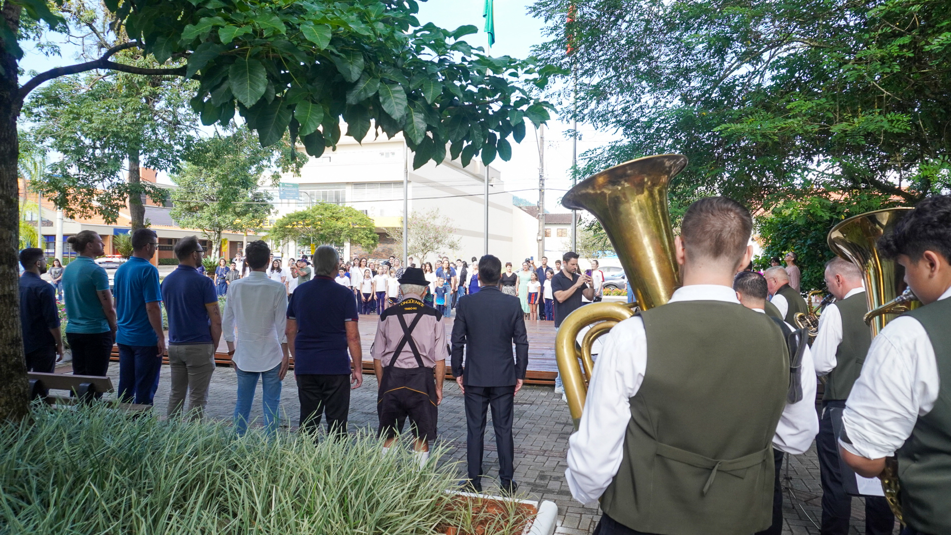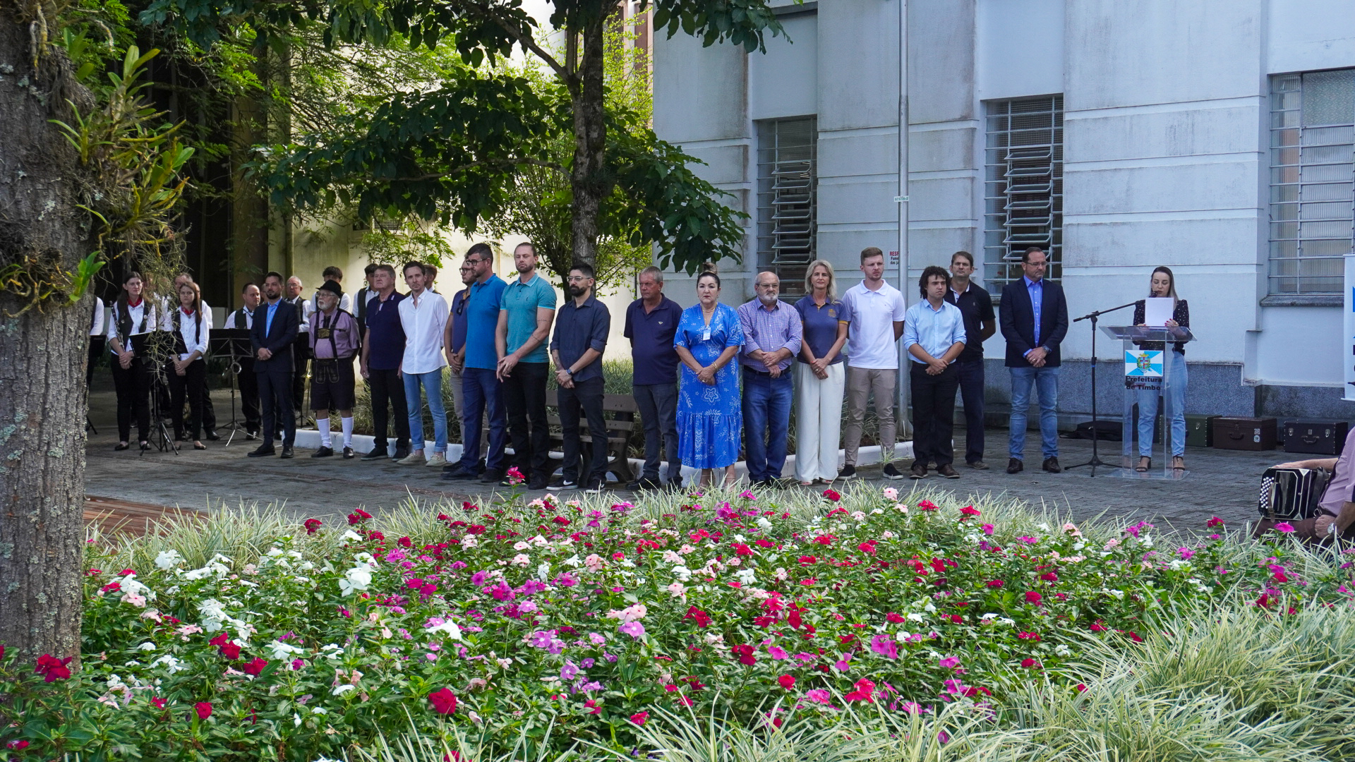 Os hinos Nacional e Municipal foram entoados pela Banda Municipal Professor João Müller. O estudante da Escola Municipal Polidoro Santiago Guilherme Luiz Vicenzi, declamou o poema “É noite em teu jardim mãe”, do saudoso poeta timboense Lindolf Bell.