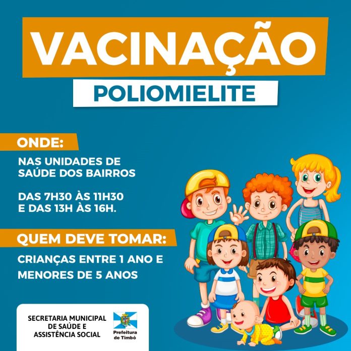 A Prefeitura de Timbó, através da Secretaria de Saúde, inicia nesta segunda-feira a Campanha Nacional de Vacinação contra a Poliomielite.