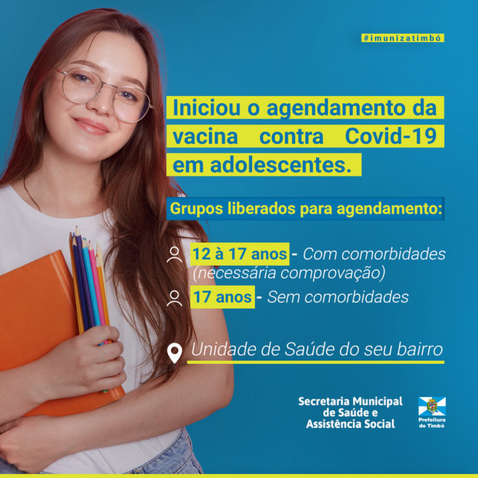A Secretaria de Saúde informa que iniciou o agendamento da vacina contra Covid-19 em adolescentes. Os dois grupos que estão liberados para agendamento até o momento são adolescentes entre 12 e 17 anos com comorbidades (confira a lista abaixo) e adolescentes de 17 anos sem comorbidades.