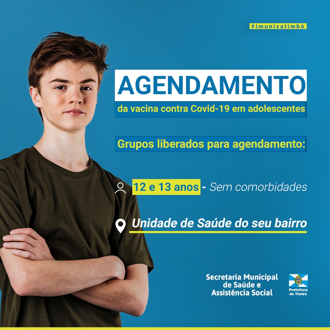 A Secretaria de Saúde informa que iniciou o agendamento da vacina contra Covid-19 em adolescentes com 12 e 13 anos.