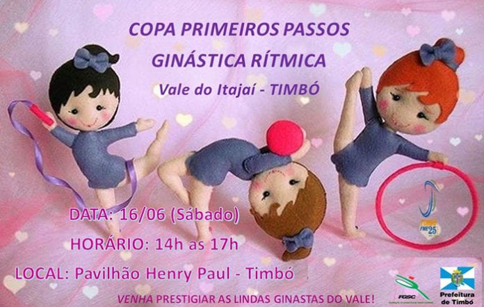 O Pavilhão de Eventos Henry Paul será sede da etapa regional da Copa Primeiros Passos de Ginástica Rítmica, neste sábado (16), a partir das 14h. A competição é promovida pela Federação Catarinense de Ginástica Rítmica, com apoio da Prefeitura de Timbó, através da Fundação Municipal de Esportes, FME Timbó, e envolve atletas da categoria estudante de todo o Vale do Itajaí, das cidades de Timbó, Indaial, Blumenau, Balneário Camboriú, Itajaí e Brusque.