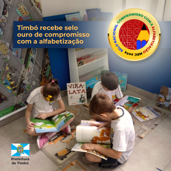 Nesta semana, a Rede Municipal de Educação de Timbó recebeu uma ótima notícia: selo ouro de compromisso com a alfabetização, o nível mais alto a ser alcançado. O selo, concedido pelo Ministério da Educação, é uma forma de reconhecer e valorizar as boas práticas das Secretarias de Educação (Estaduais, Municipais e Distrital) na implementação de ações estruturantes em prol da alfabetização.