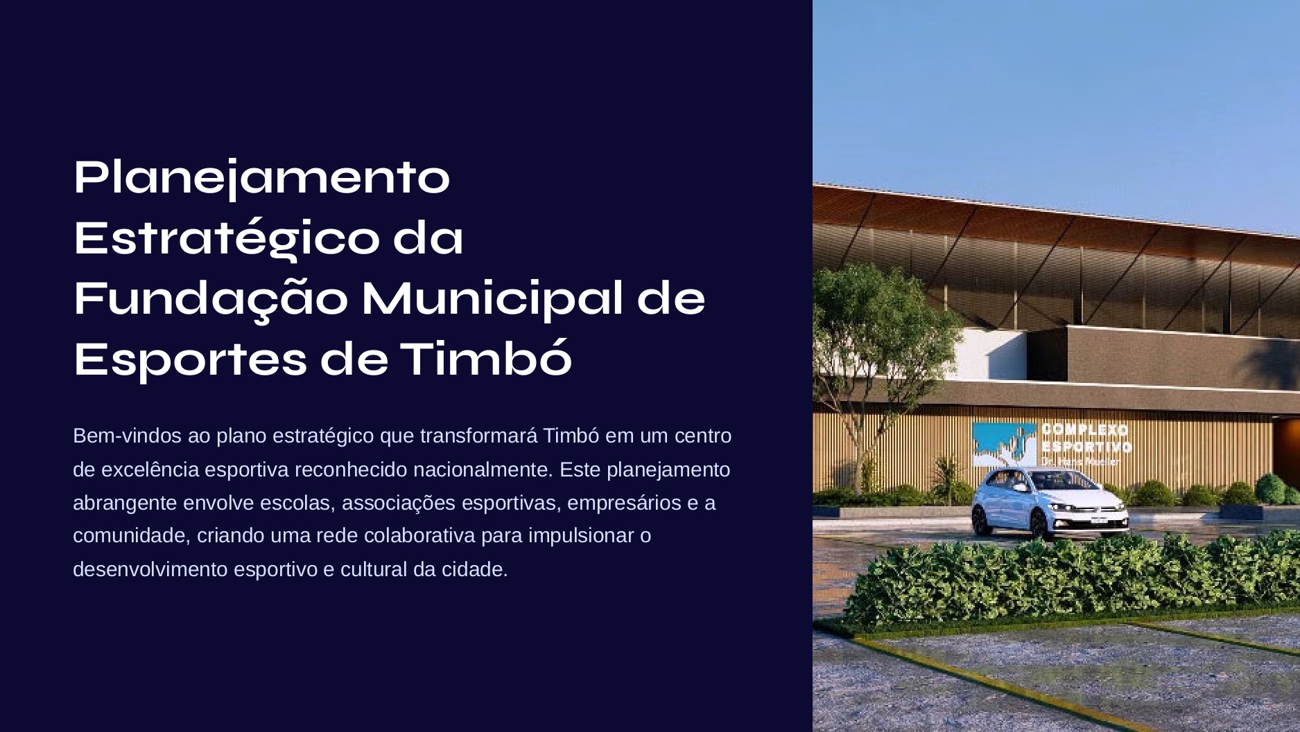 Mais do que um plano, trata-se de um movimento coletivo que une escolas, clubes, associações, empresários, atletas e o poder público em torno de um mesmo propósito: fazer de Timbó uma referência nacional em gestão esportiva, inclusão e formação de talentos.