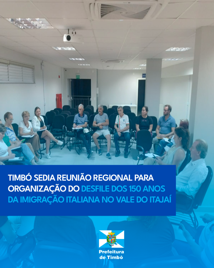 Na noite dessa segunda-feira, 17, a sede da Fundação de Cultura e Turismo de Timbó foi palco da reunião preparatória para o grande desfile em celebração aos 150 anos da imigração italiana no Vale do Itajaí. O encontro reuniu representantes dos municípios de Timbó, Blumenau, Ascurra, Luiz Alves, Rio dos Cedros, Indaial e Doutor Pedrinho, reforçando o compromisso regional com a valorização da cultura italiana.