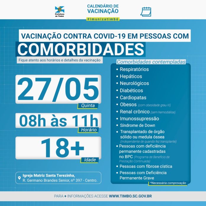 -Ter a partir de 18 anos completos e possuir alguma das comorbidades abaixo: