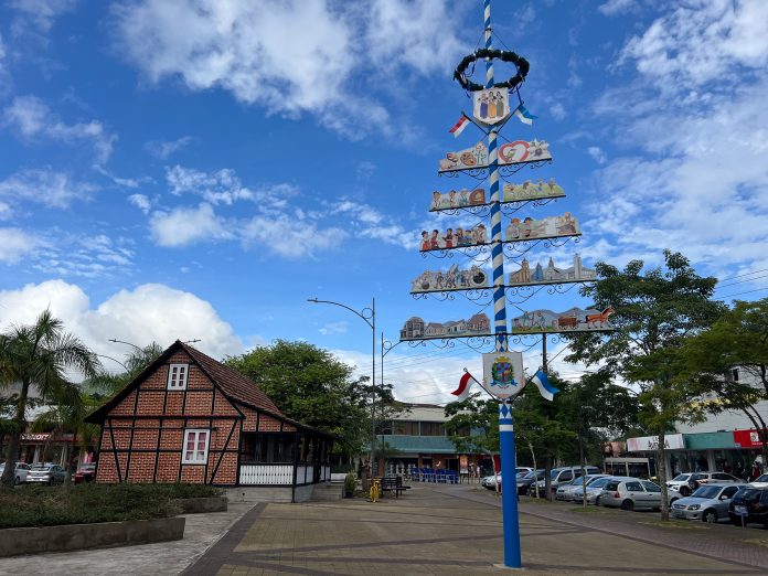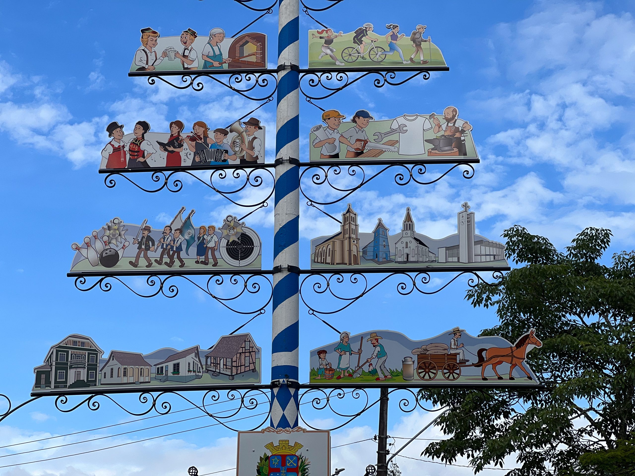 na Praça Frederico Donner, um Maibaum. A tradução do nome é Árvore de Maio, pois ela é de origem europeia, que neste mês celebra a c