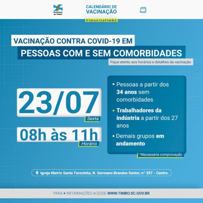 É necessário levar a carteirinha de vacinação e documento de identidade. Também é preciso ser residente de Timbó, com cadastro em uma das Unidades de Saúde do município.