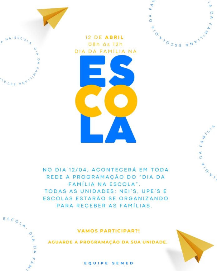 A Secretaria Municipal de Educação convida todas as famílias a participarem desse momento especial em suas respectivas unidades escolares. A programação acontece simultaneamente em todas as unidades escolares do município neste sábado, dia 12. Para mais informações sobre horários e atividades, os responsáveis podem entrar em contato com a direção de cada unidade.