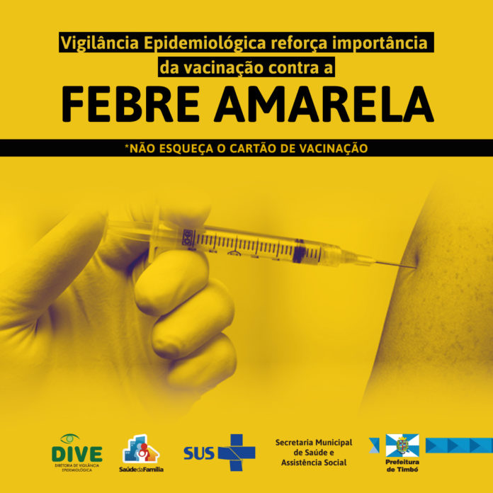 Nos meses de dezembro a maio, a circulação do vírus da Febre Amarela é maior na nossa região. Somente neste mês, o município de Timbó já notificou um caso suspeito de Febre Amarela em humano, de um morador que não estava vacinado. No momento, ele permanece internado no Hospital Nereu Ramos, em Florianópolis.