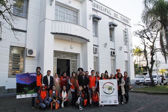 Estudantes universitários de quatro estados do Brasil já estão em Timbó para desenvolver as ações que integram a Operação Rondon Encantos do Vale, organizada pelo Núcleo Extensionista Rondon da Universidade do Estado de Santa Catarina NER UDESC. O grupo, acompanhado por professores, foi recepcionado na manhã desta quinta-feira, dia 12, pelo prefeito de Timbó, Jorge Kruger, e secretários municipais. Os voluntários conheceram as dependências da Prefeitura e seguiram para as atividades programadas.